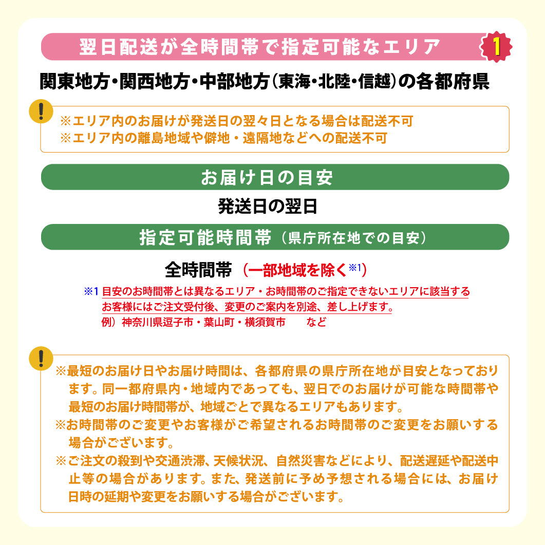 関東地方・関西地方・中部地方(東海・北陸・信越)[離島/山間僻地等の遠隔地を除く]のみ配送が可能な商品です。